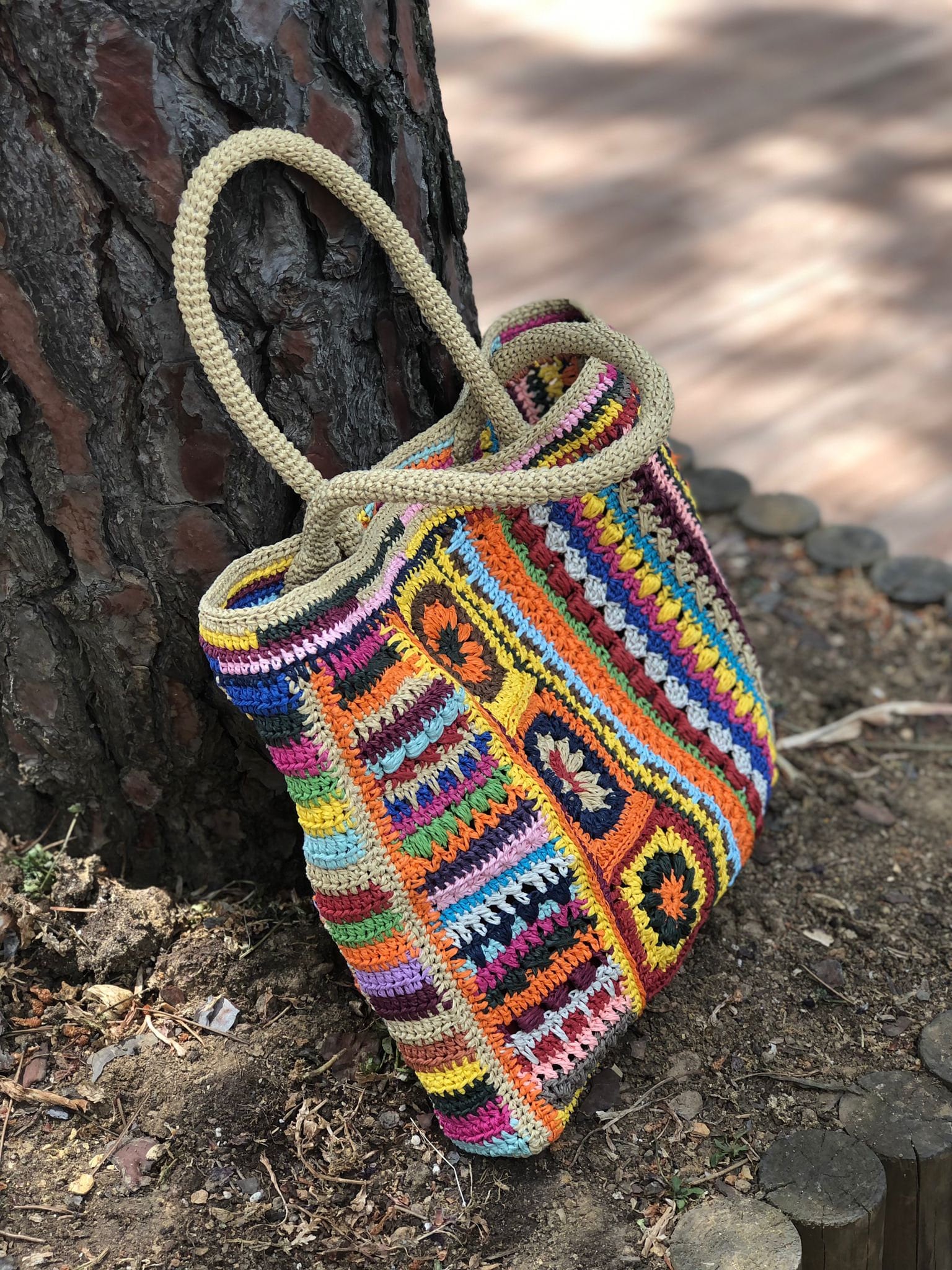 Easy Crochet Bag For Womens Colored Granny Square Tote Easy Etsy De